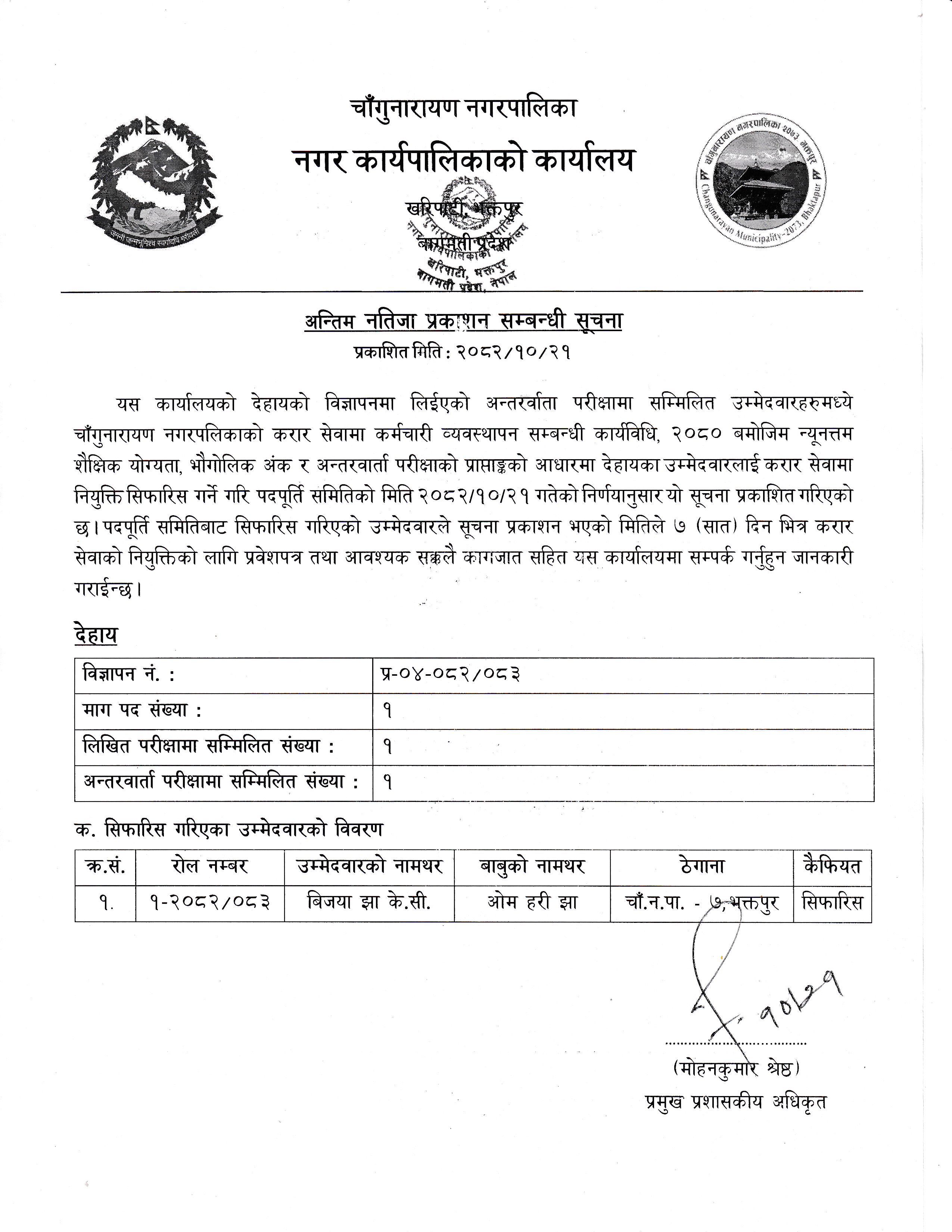 अन्तिम नतिजा प्रकाशन सम्बन्धी सूचना