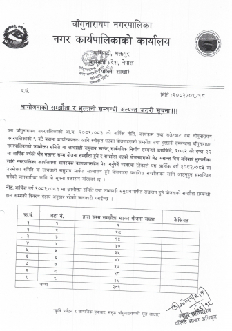आयोजनाको सम्झौता र भुक्तानी सम्बन्धी अत्यन्त जरुरी सूचना !!!
