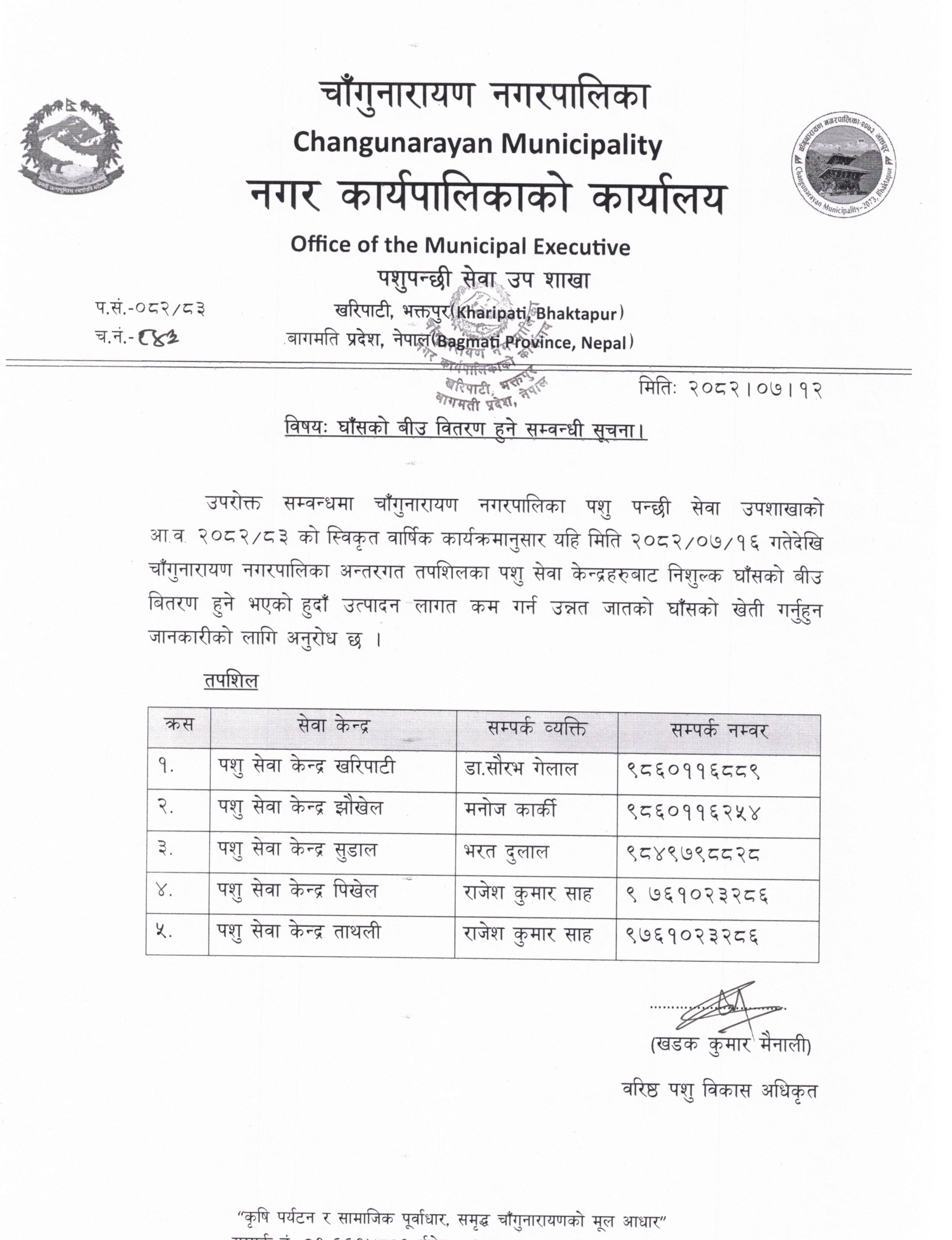 » घाँसको बीउ वितरण हुने सम्वन्धी सूचना।