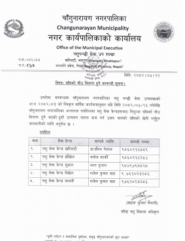 घाँसको बीउ वितरण हुने सम्वन्धी सूचना।