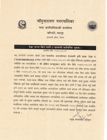 ठेक्का अन्त्य किन नगर्ने? सम्बन्धी सार्वजनिक सूचना ।