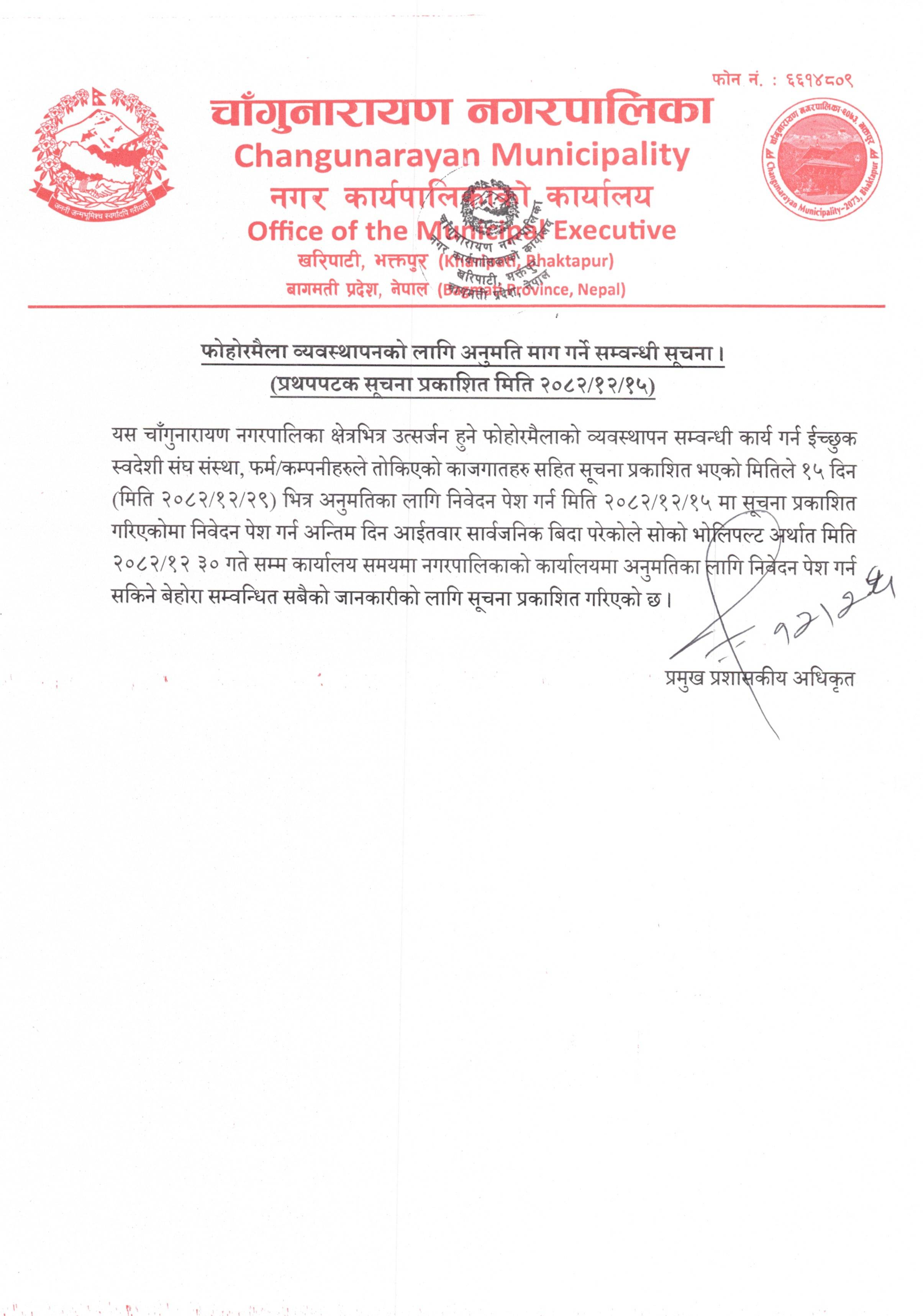 फोहोरमैला व्यवस्थापनका लागि अनुमति माग गर्ने सम्बन्धी सूचना ।