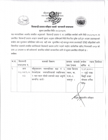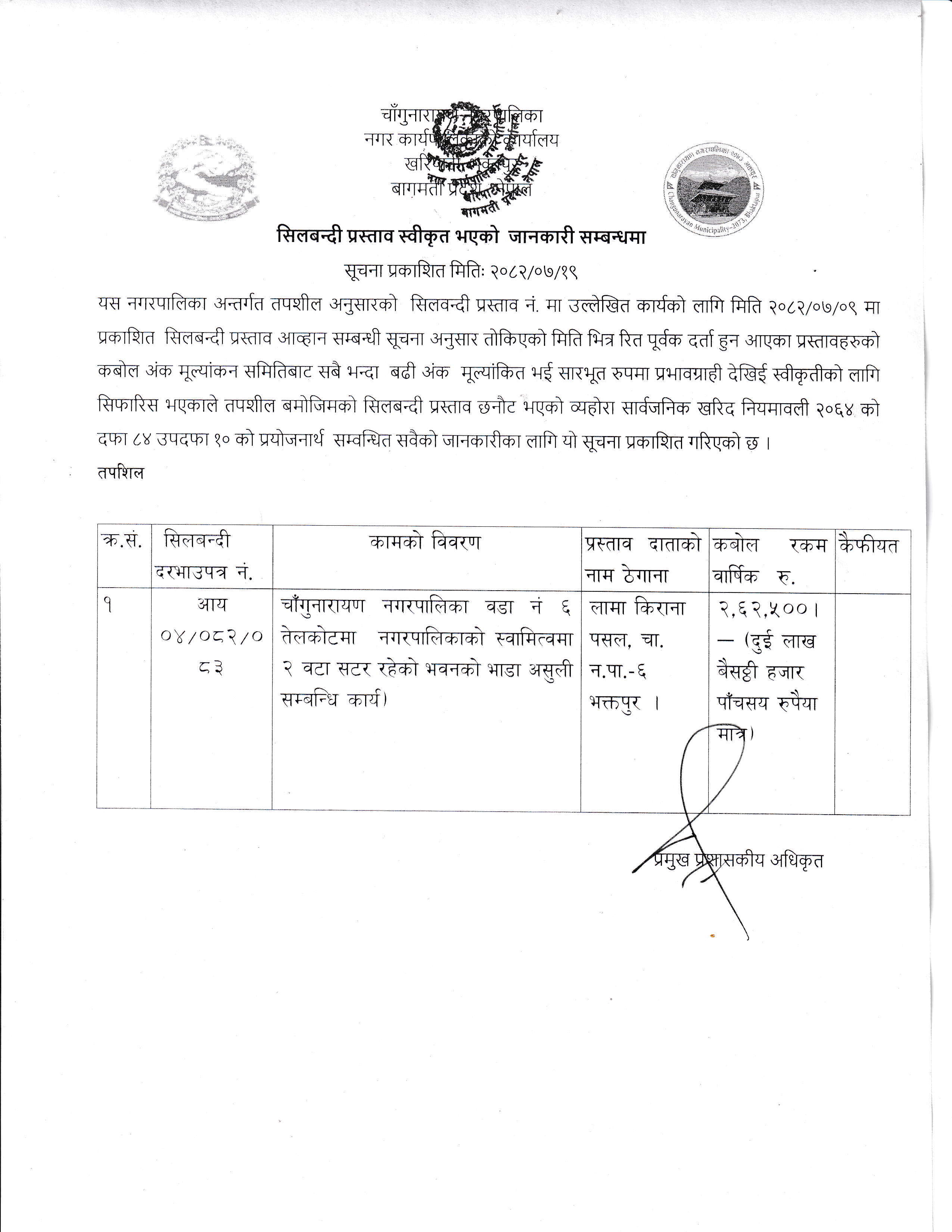 सिलबन्दी प्रस्ताव स्वीकृत भएको जानकारी सम्बन्धमा