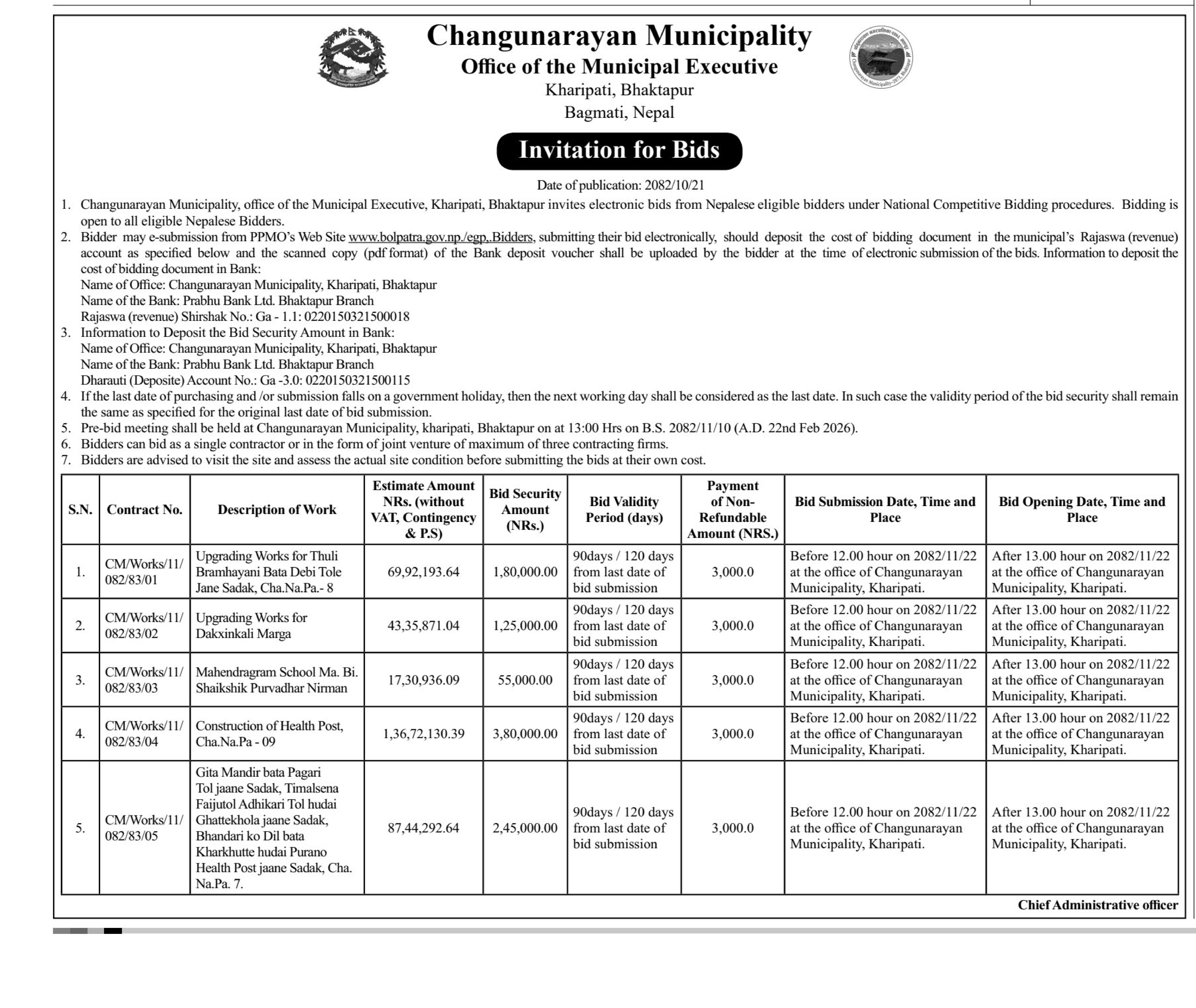 सार्वजनिक खरिद/बोलपत्र सूचना