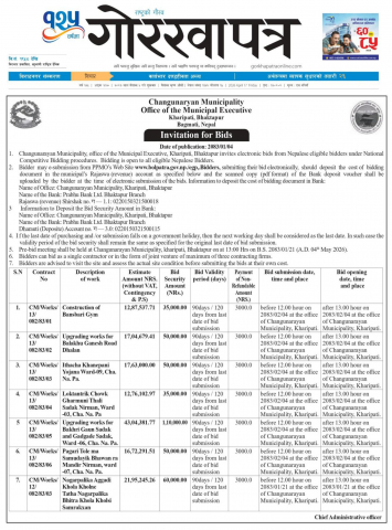 सार्वजनिक खरिद/बोलपत्र सूचना