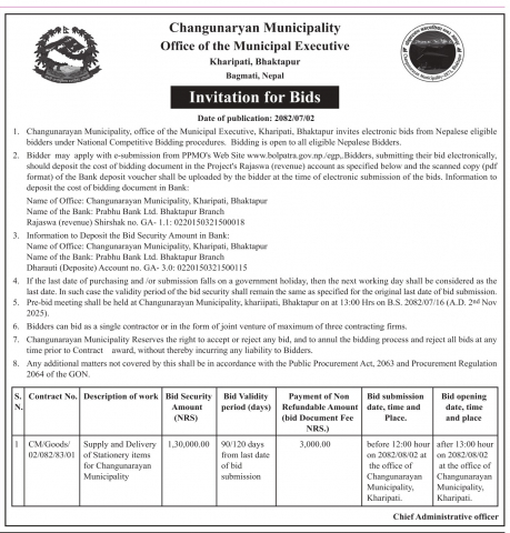 सार्वजनिक खरिद/बोलपत्र सूचना