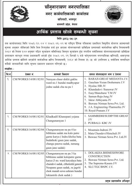 चाँगुनारायण नगरपालिकाद्वारा जारी गरिएको सूचना ।