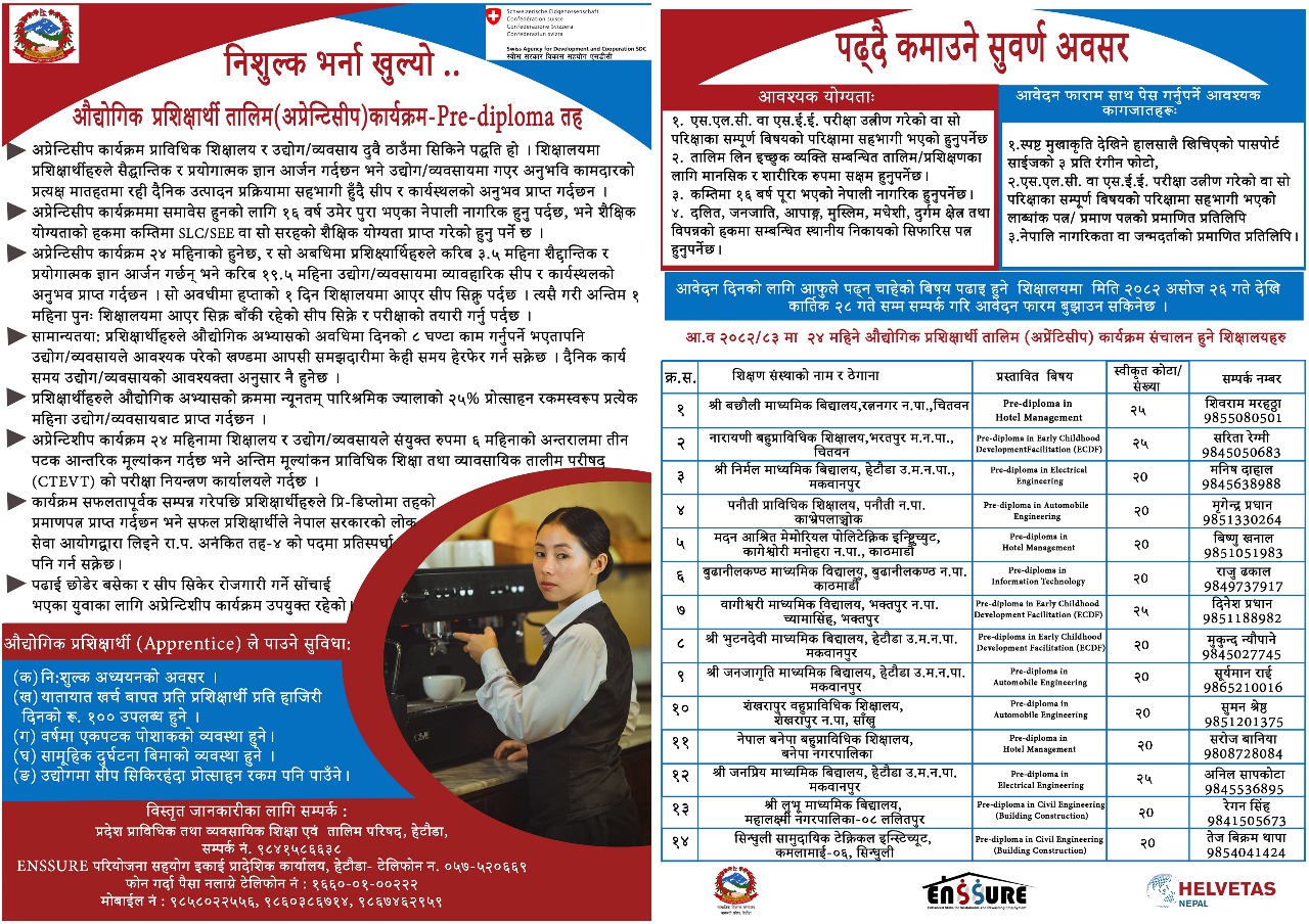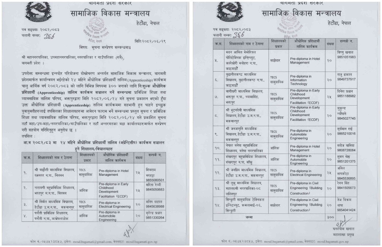 औद्योगिक प्रशिक्षण तालिम सम्बन्धि सूचना