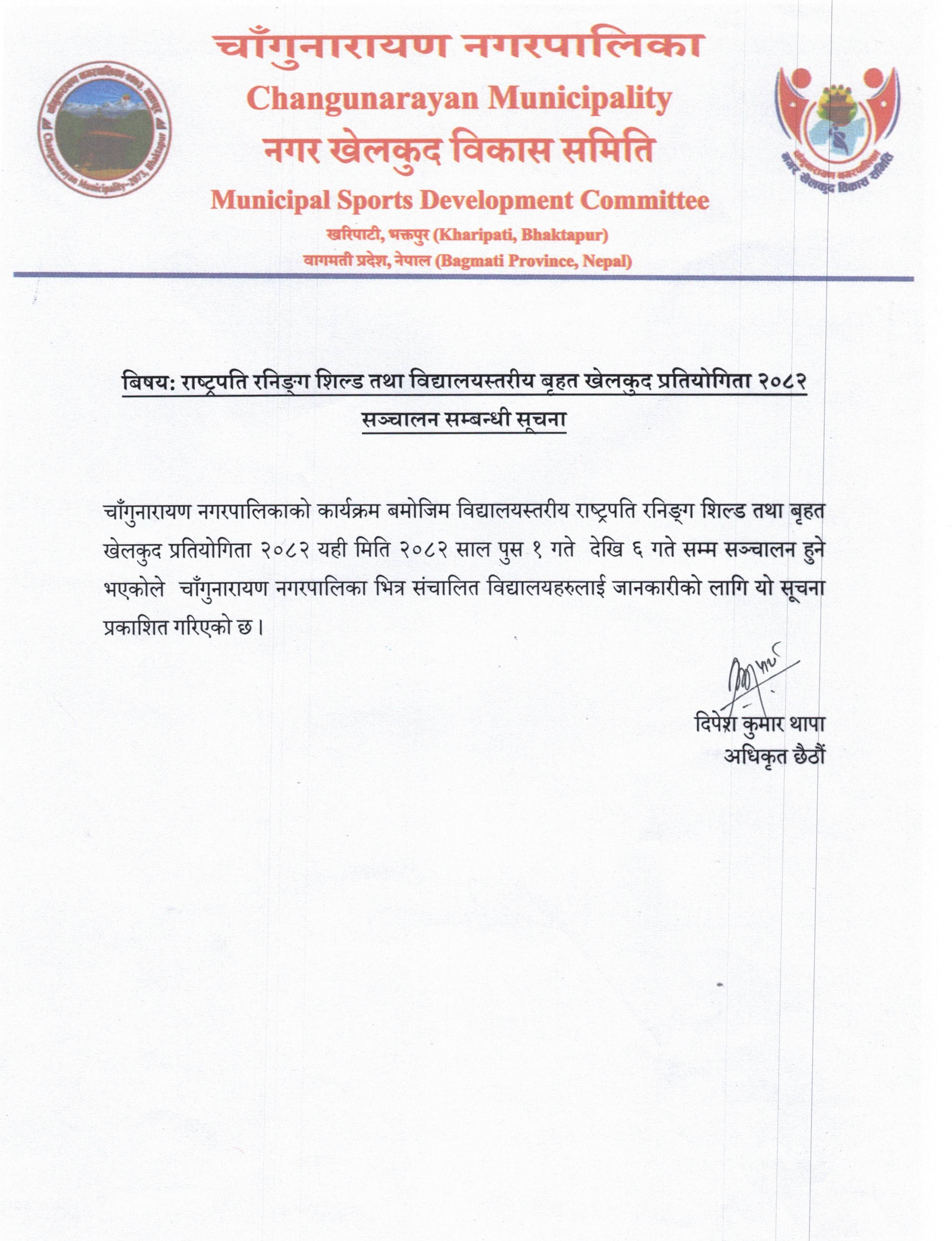 राष्ट्रपति रनिङ्ग शिल्ड तथा विद्यालयस्तरीय बृहत खेलकुद प्रतियोगिता २०८२ सञ्चालन सम्बन्धी सूचना